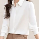Upgrade your workwear with this elegant women’s long sleeve office shirt, designed for a polished and professional look. Crafted from soft, breathable fabric, it offers all-day comfort while maintaining a structured silhouette. Featuring a classic collar, button-down front, and tailored fit, this versatile shirt pairs perfectly with trousers or skirts—ideal for meetings, office days, or formal events. A timeless wardrobe essential for effortless sophistication.